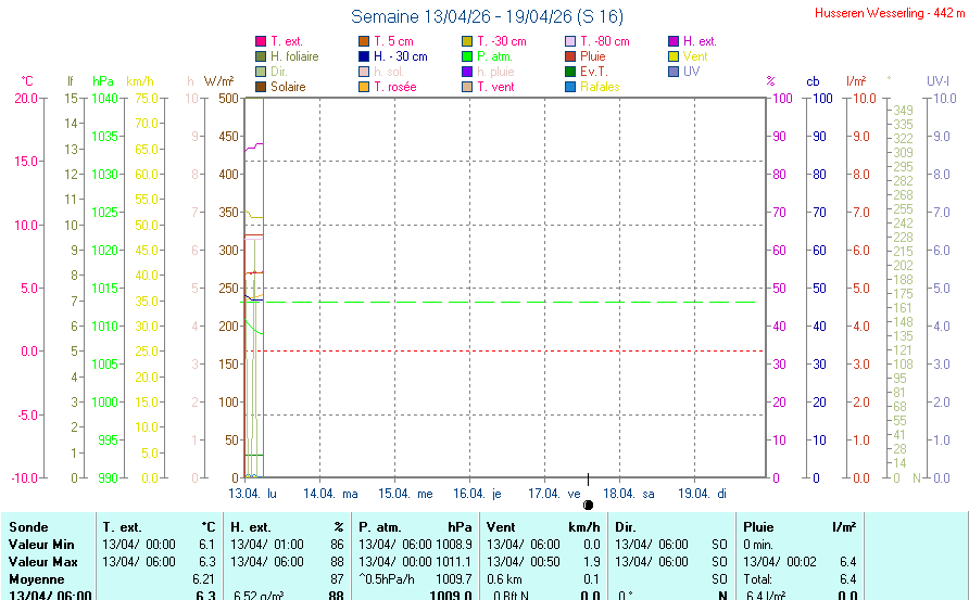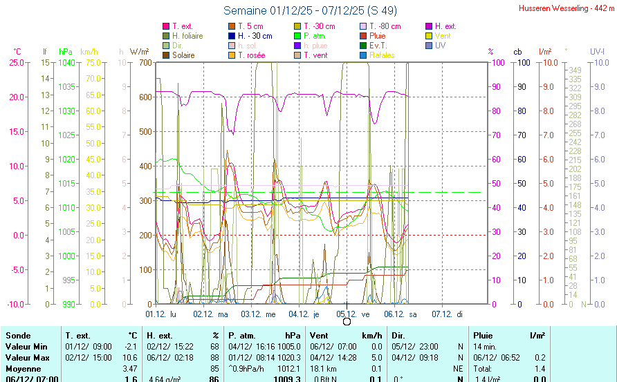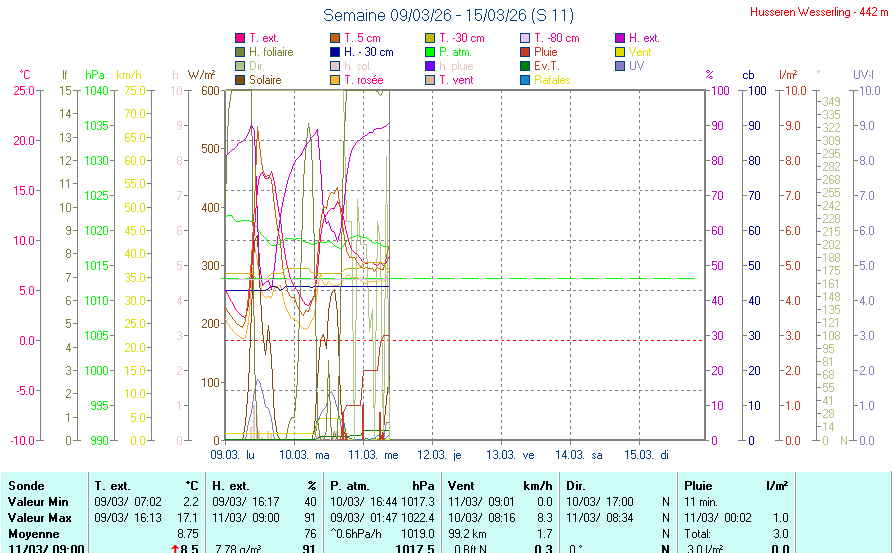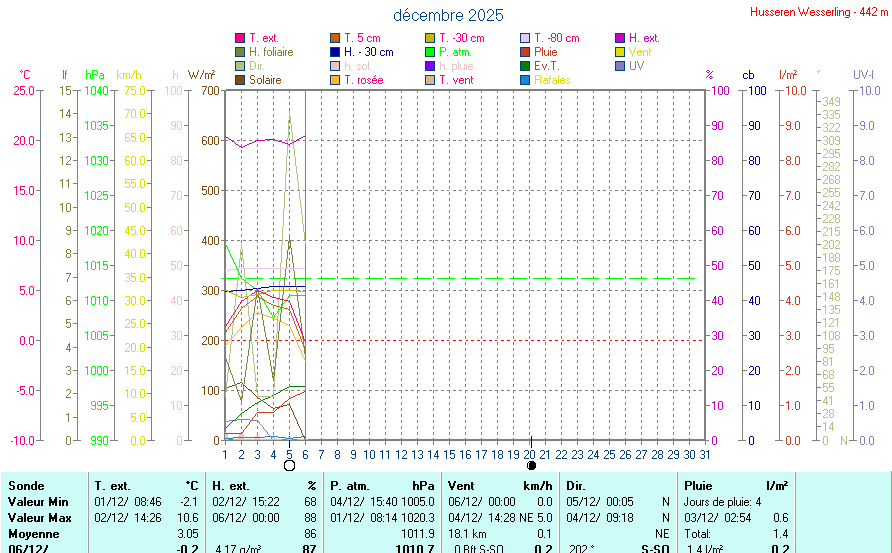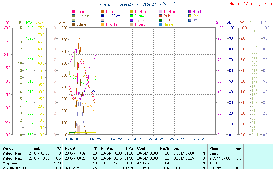 Les valeurs représentent les données de la Journée courante! Baromètre au-dessus du niveau de la mer |