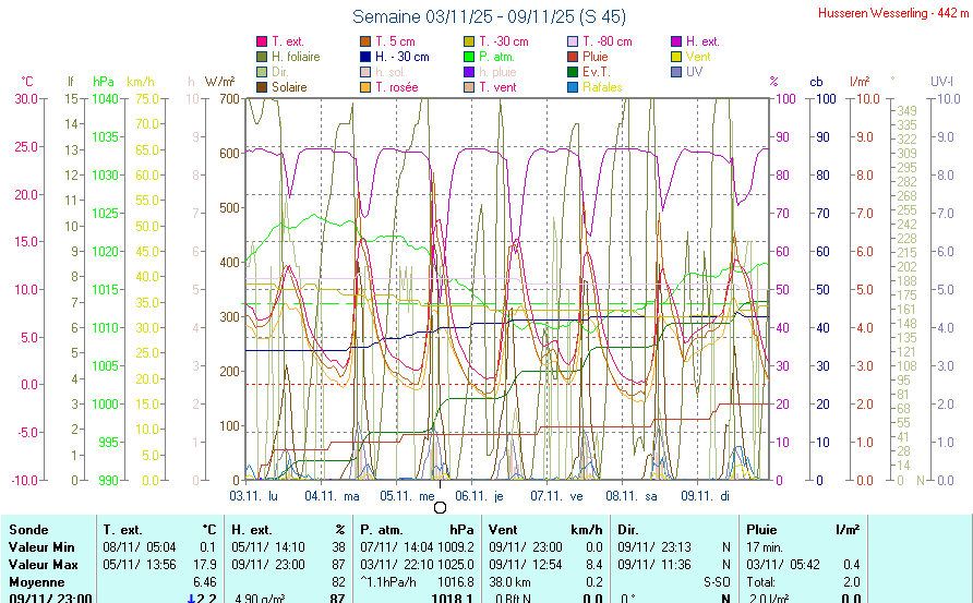 Les valeurs représentent les données de la Journée courante! Baromètre au-dessus du niveau de la mer |